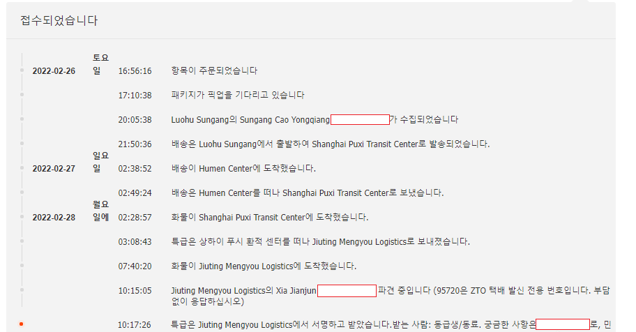 2월 26일에 타오바오에서 주문을 했는데, 토요일, 일요일도 배송을 하더군요;;