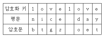 - 평문의 문자를 숫자로 변환(a=0, b=1, …).